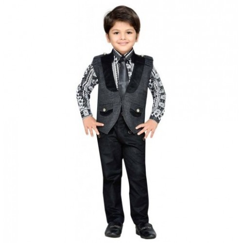 Hit the streets in style wearing this beautiful Fawn(Brown) colored Indo western set which includes a waistcoat, shirt, bow tie, and pants.